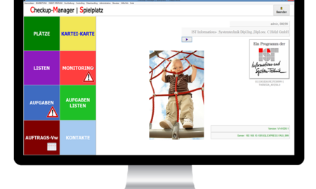 Mit dem "Checkup-Manager | Spielplatz" überprüfen Sie Spielplätze. Sie dokumentieren den festgestellten Zustand und eventuelle Mängel. Nach der jeweiligen Überprüfung, zeigt Ihnen der "Checkup-Manager | Spielplatz" anhand einer Gefahrenampel sofort an, welche Spielgeräte und Spielplätze Ihre Aufmerksamkeit benötigen. Sie erhalten integrierte Prüfberichte und aktualisieren den Status Ihrer Spielgeräte.